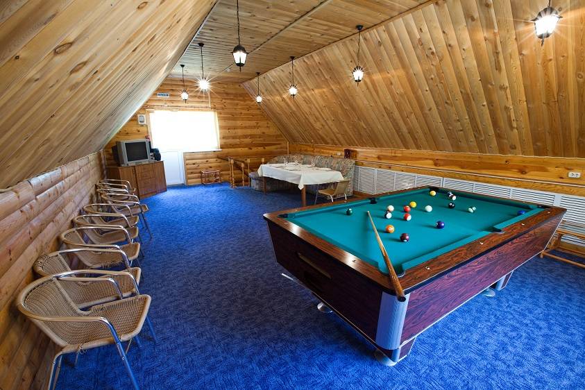 Баня рассчитана на 20 человек, есть парная, большой бассейн, комната отдыха с бильярдом и караоке. Еду вы можете привезти с собой или заказать в нашем ресторане.